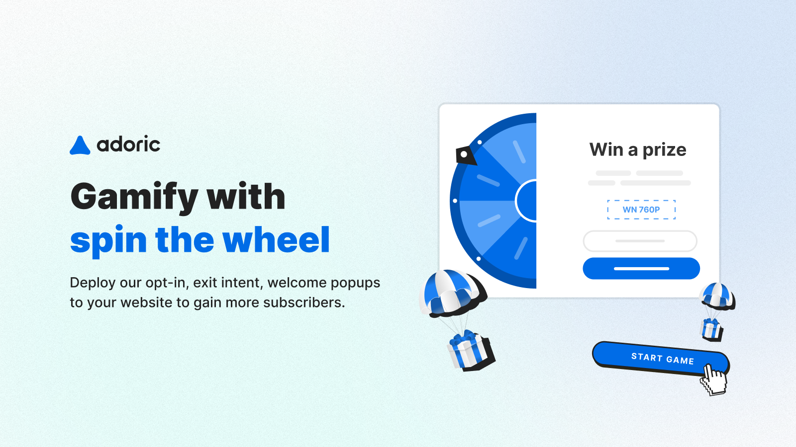 That's the industry average for standard popups. Merchants using Adoric's Falling Gifts and Spin-to-Win hit 8โ€“15% โ€” same traffic, same offer. Gift boxes cascade across your store, visitors click to reveal discount codes, you get the email. The format was always the problem.
